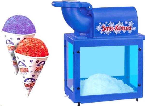 Simply add ice cubes into the hopper and crush to a soft snowy pile. Scoop into a cone or cup and add your favorite flavour on top. When ordering this item also consider sno-cone paper cones and sno-cone syrup flavouring. You also need bags of ice and somewhere to keep your bags of ice frozen throughout the day (not included in rental).